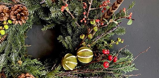 Options to prepare a foliage-only wreath or a wreath with rich red or golden berries lotus seed pods fragrant cinnamon sticks Christmas baubles and lush foliage. There is no better way than a wreath making workshop. During this fun and festive DIY craft class you will learn how to make your own unique eco-friendly Christmas wreath.